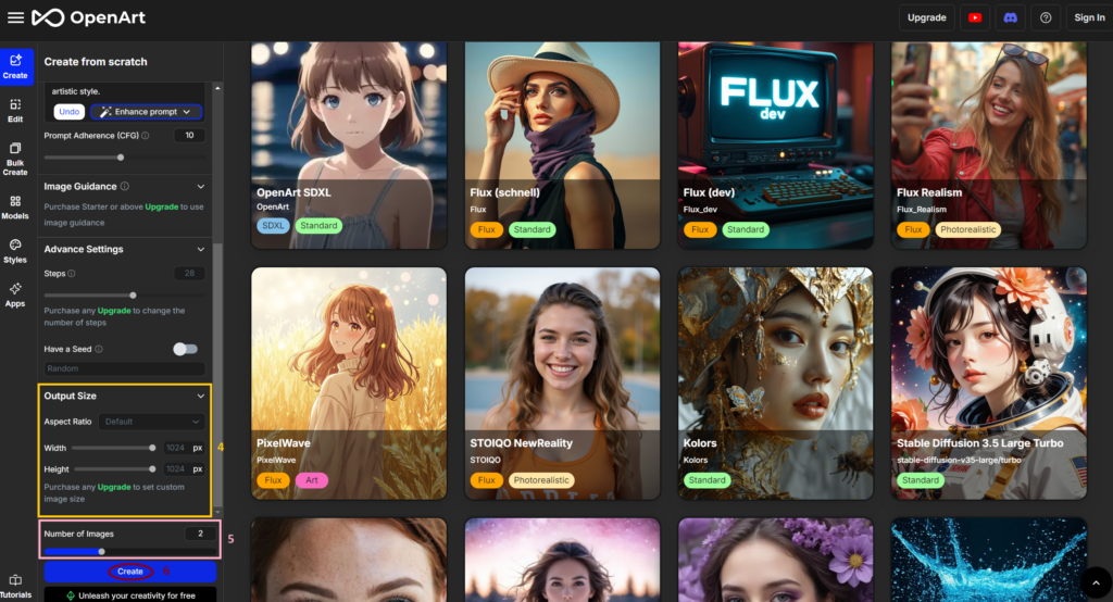 5. Number of images: ustalasz ile obrazów AI ma wygenerować za jednym podejściem.